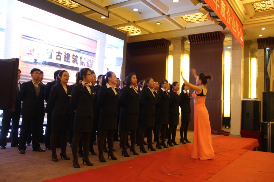 年会由公司总经理吉万林主持,并宣布年会正式开始。在激情四射的暖身舞中大会拉开帷幕。公司副董事长荀建致开幕词,并播放公司宣传片《古建筑之光》。在热情洋溢的气氛中,丰富多彩的文艺节目让与会同仁感受到了快乐、团结的企业文化形象,给观众以全新的企业认识;激扬的《保卫黄河》大合唱唱出了公司大刀阔斧改革的气派;荀子铭小朋友的钢琴演奏弹出了公司未来希望;张翼鸿独唱《我要飞》赢得了阵阵掌声。