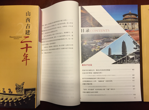 《山西古建二十年》于2016年4月正式出版发行。此书是为纪念山西省古建筑集团成立二十周年而编纂的一部企业发展历史纪念文集,是山西古建的又一力作。